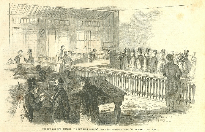 "The New Tax Law--Interior of a New York Assessor's Office, Broadway, New York," 1862. | Frank Leslie's Illustrated Newspaper, Nov. 1, 1862. |