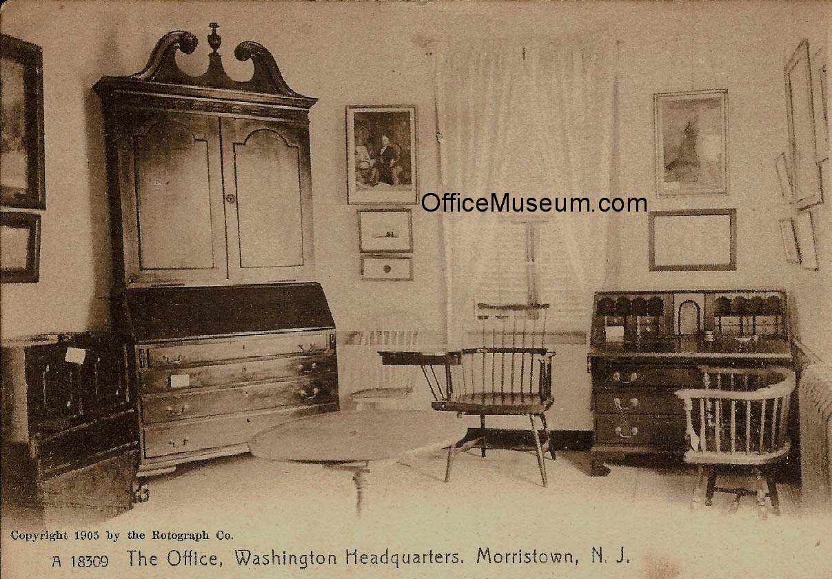 Office, General George Washington's 1779-80 Winter Headquarters, outside Morristown, NJ, now Morristown National Historical Park. This postcard was published in 1905. | Early Office Museum Archives |