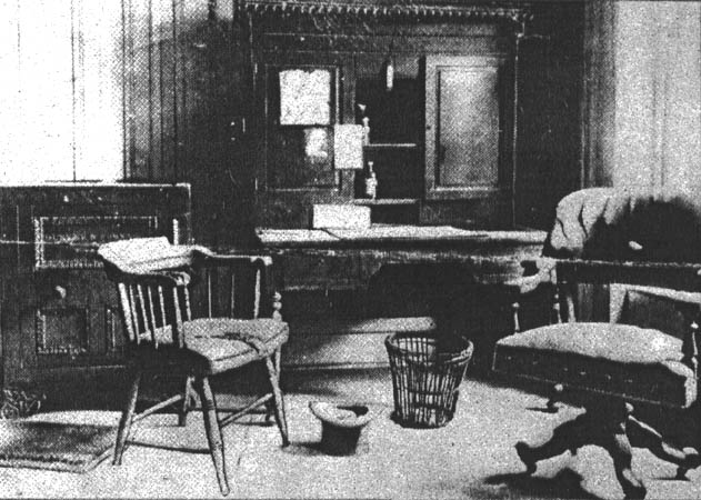 seen in the centre, coming up from the great door on the Immediately below is an image of the Magazine Corner of the general office. Below that is the floor plan of the general office, which was the only office room in the building. |