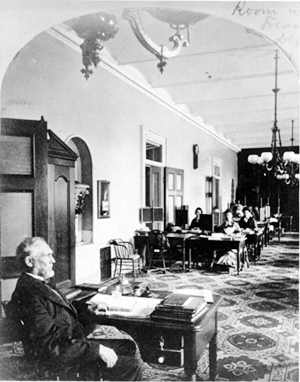 "Governor Samuel J. Tilden of New York Transacting Business, Executive Chamber, Albany," NY, 1875. | Frank Leslie's Illustrated Newspaper, Feb. 20, 1875. |